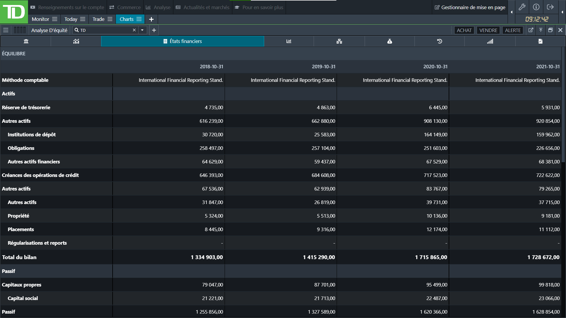 États financiers La composante des états financiers vous permet de voir les états financiers d’un titre donné au cours des 4 dernières années.