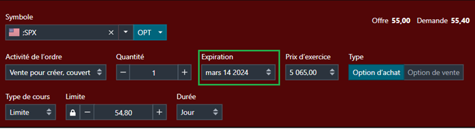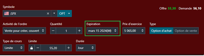 - Les options à échéance mensuelle ont le suffixe M : 15 mars 2024 (M)