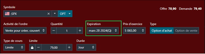 - Les options à échéance trimestrielle ont le suffixe Q : 28 mars 2024 (Q)