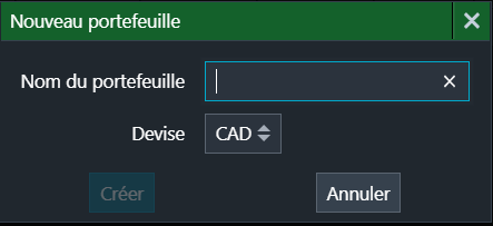 6. Cliquez sur le bouton pour créer un nouveau portefeuille. Vous pouvez choisir entre $ CA et $ US.