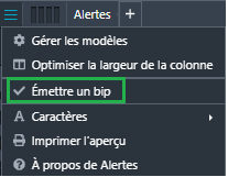 Alertes sonores : Activez une alerte sonore en sélectionnant Émettre un bip dans le menu du widget.