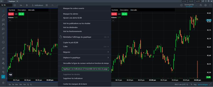Pour apporter des modifications à l’ensemble de vos graphiques (ajout ou suppression d’indicateurs) :